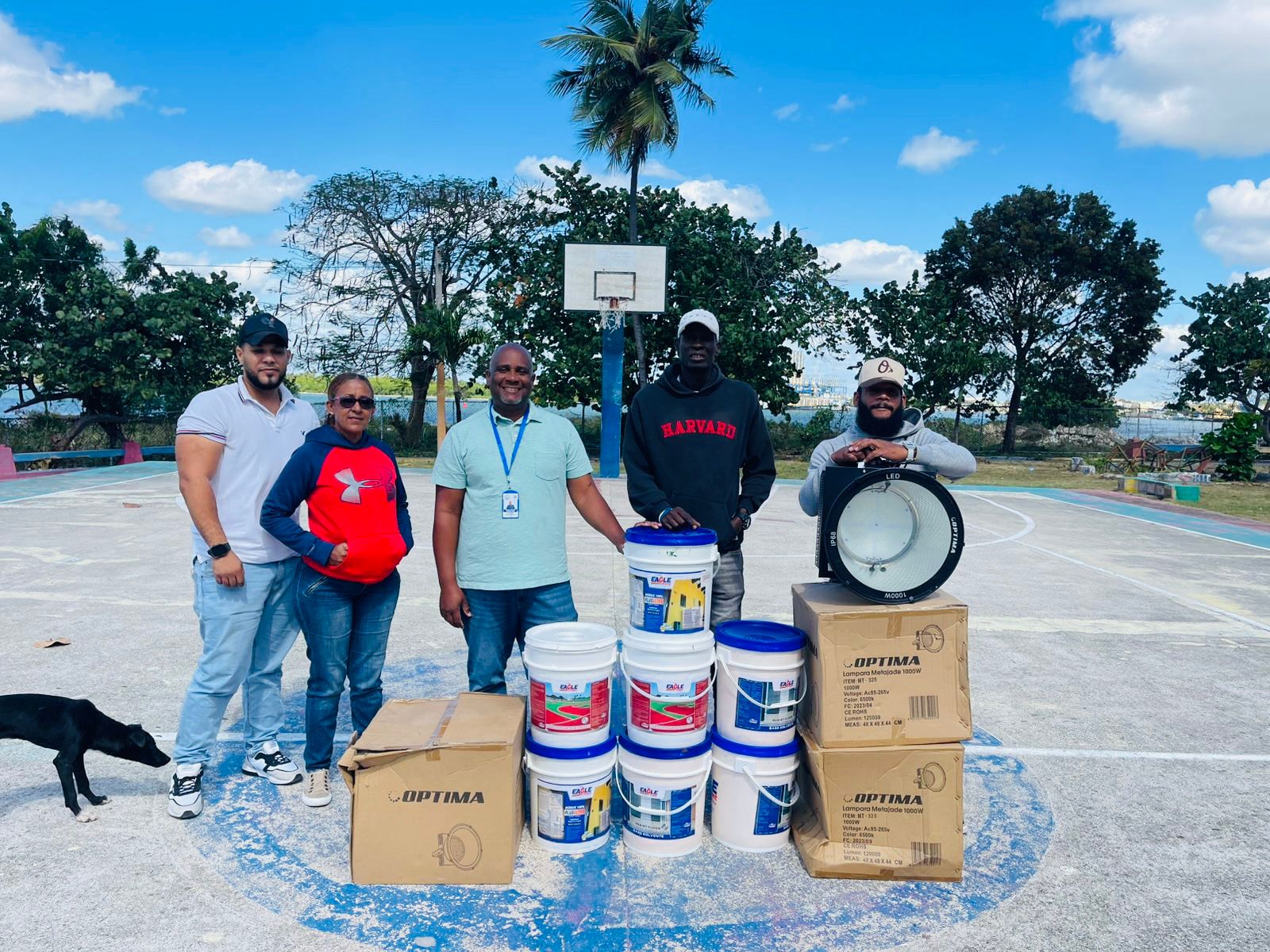 La Alcaldía de San Pedro de Macorís, a través del Departamento de Deportes, realizó la entrega de siete cubetas de pintura y tres lámparas para la cancha del Malecón, ubicada en el Parque Infantil Sonia Iris Reyes, contribuyendo al embellecimiento y mejor iluminación de este importante espacio recreativo.