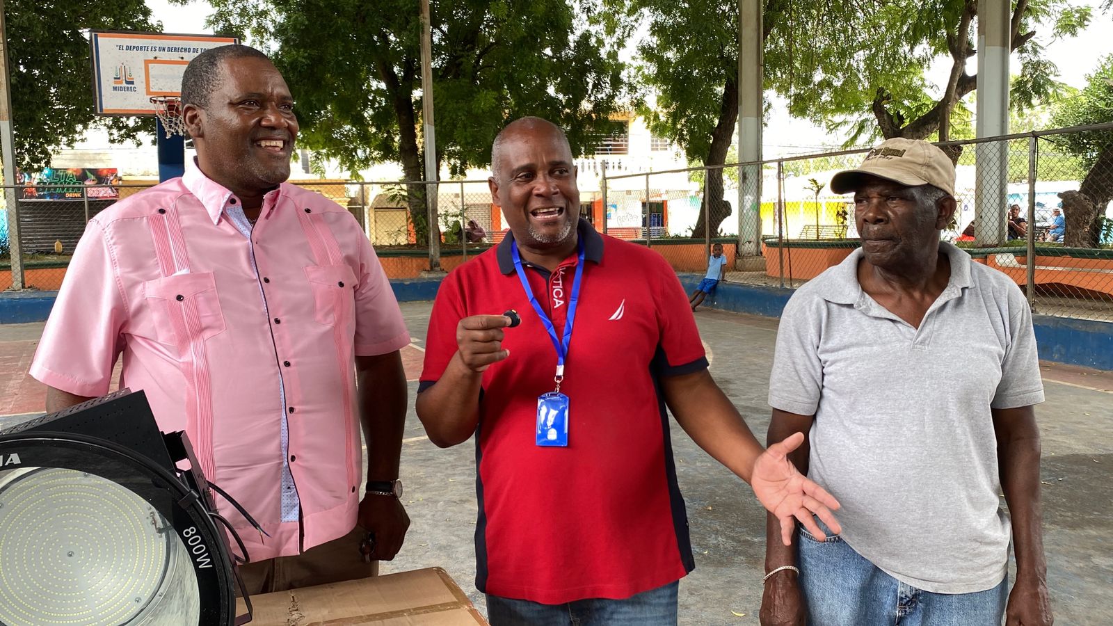 La Alcaldía de San Pedro de Macorís entregó este miércoles lámparas y pintura para la cancha y el techado del sector Punta de Garza, como parte de su programa de recuperación y acondicionamiento de espacios deportivos.