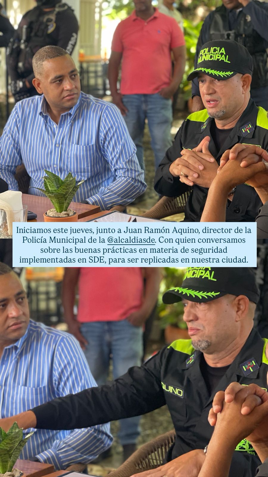 El director de la Policía Municipal de Santo Domingo Este, Juan Ramón Aquino, junto a parte de su equipo, realizó una visita a la Alcaldía de San Pedro de Macorís, atendiendo a una invitación del alcalde Raymundo Ortiz, quien agradeció la presencia de los visitantes y destacó la importancia del intercambio de experiencias entre ambas instituciones.
